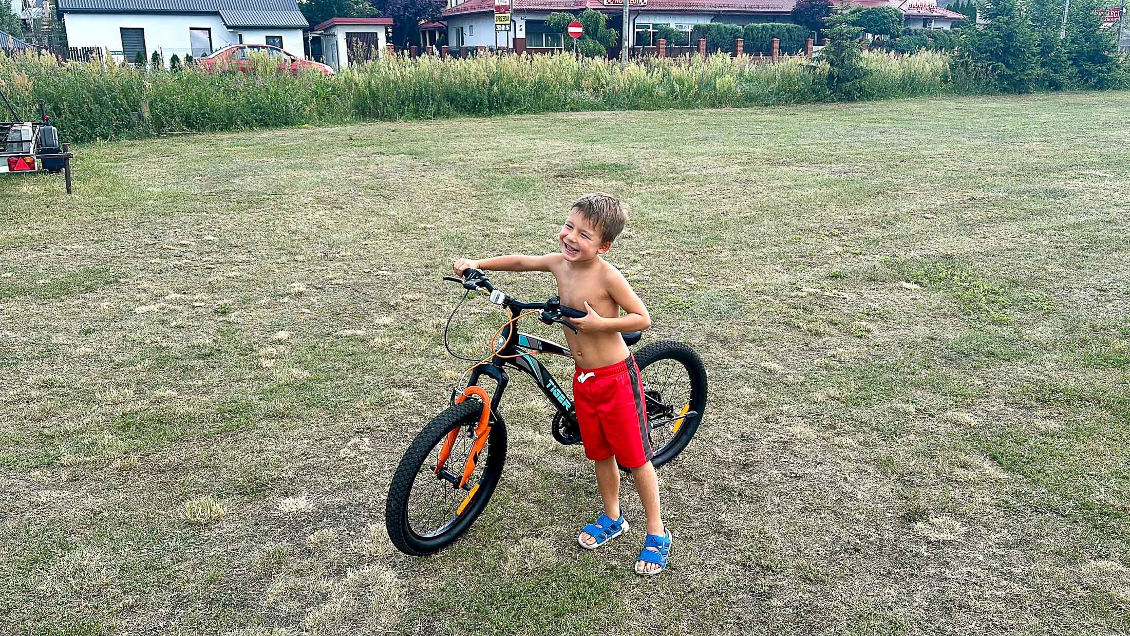 During our second week in Grajewo, Grayson received an early birthday surprise from Ciocia Gosia. She had ordered it the week before, and it was finally ready for pickup. We walked over to get her and then headed to Media Expert down the street, where his new multi-speed Tiger bike was waiting — sleek, sporty, and just his size. Even with the seat all the way down, he could barely touch the ground, but after a little practice, he got the hang of it without a single fall. Now it’s Damianek’s turn — time to find him a bike for Poland.