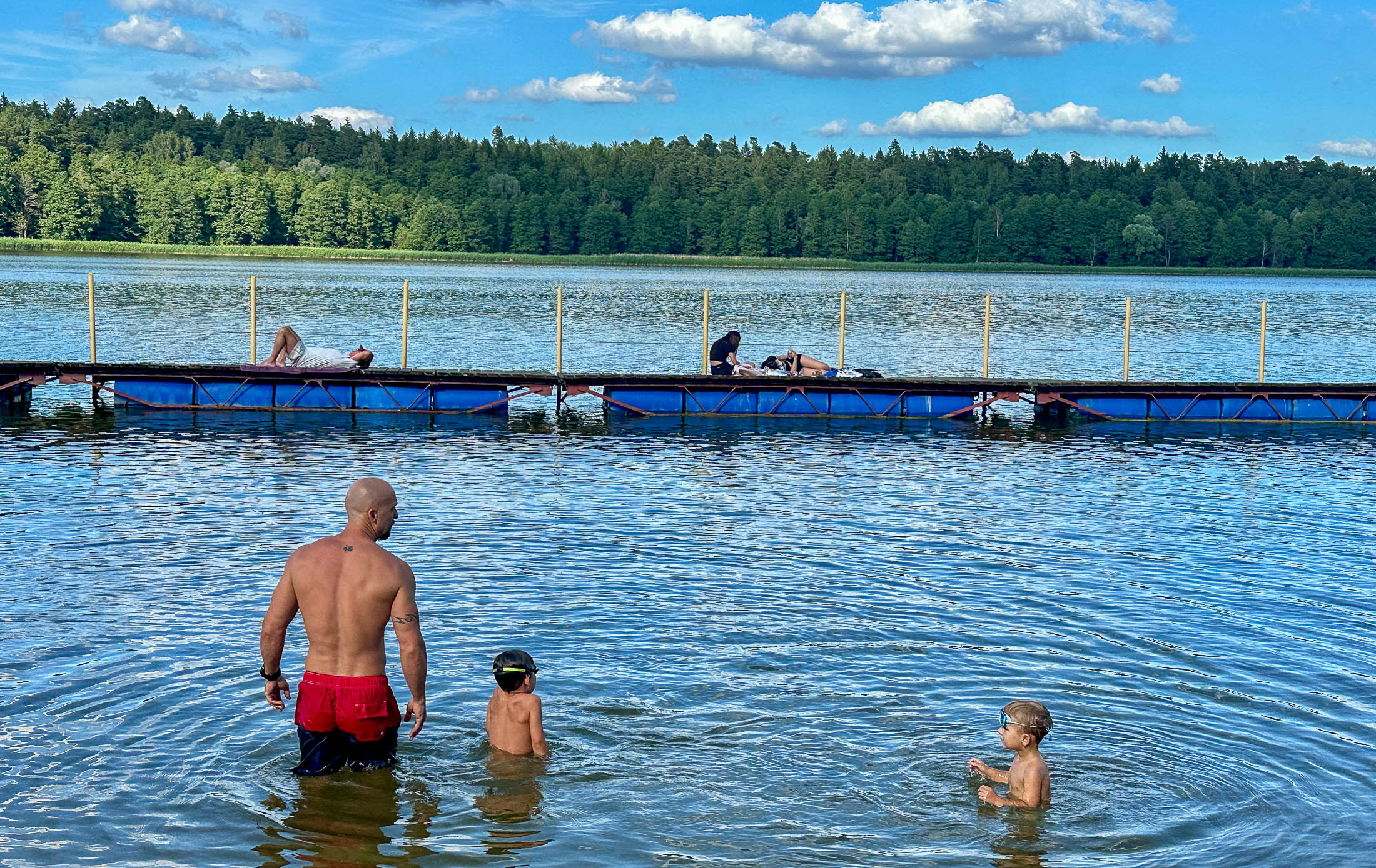 Not long after, we took a weekend trip to Gołdap, a small spa town in northeastern Poland, about 60 miles north of Grajewo. The drive took around an hour and a half on winding local roads, with no major highways in sight. My cousin Darek owns a cozy vacation cabin at Leśny Zakątek, a resort right on Gołdap Lake — a border lake where two-thirds lies in Poland and the remaining third in Russia (Kaliningrad). Swim just three-quarters of a mile north, and you’d cross into Russian waters!