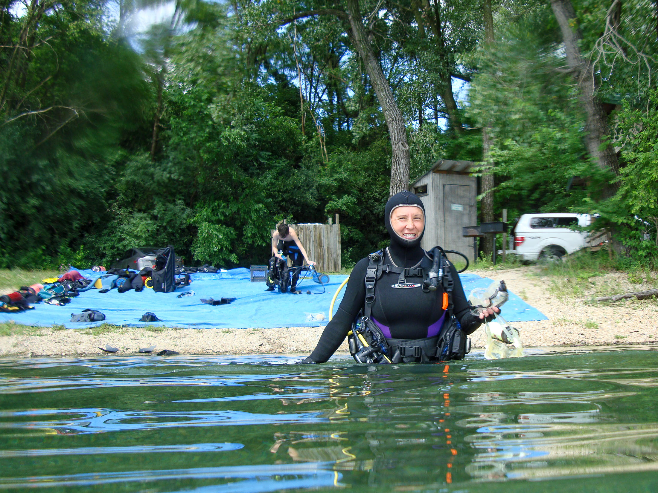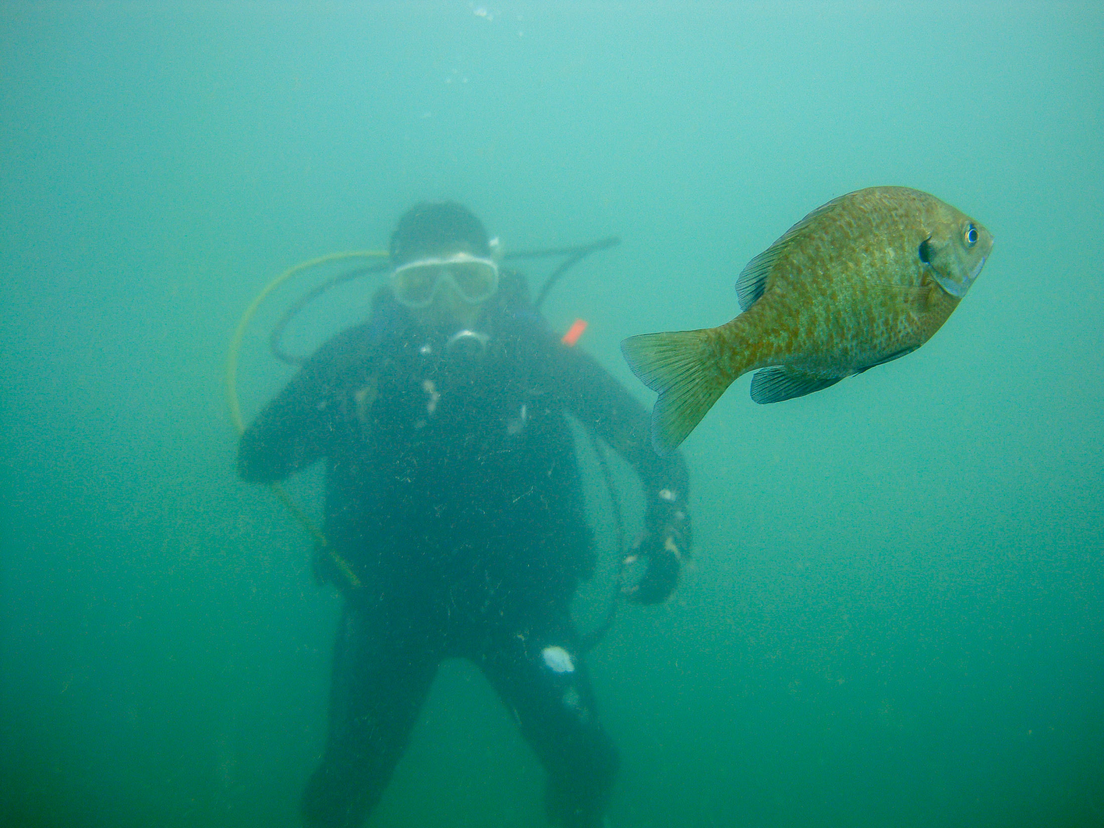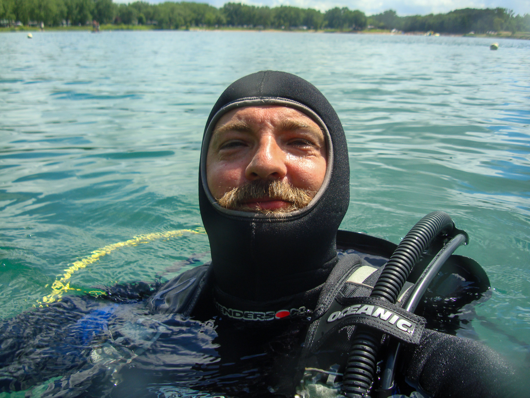 Since it had been about eight years since our last dive, we decided to leave the underwater camera behind and focus on getting reacquainted with our equipment. The water clarity was surprisingly good—easily 15 to 20 feet—and we saw plenty of fish, both large and small. We descended onto the sunken school bus and made our way to a submerged boat, both now completely encrusted with zebra mussels. After about 30 minutes underwater, we surfaced with around 2,000 psi left in our tanks (for context, a full scuba tank holds 3,000 psi).