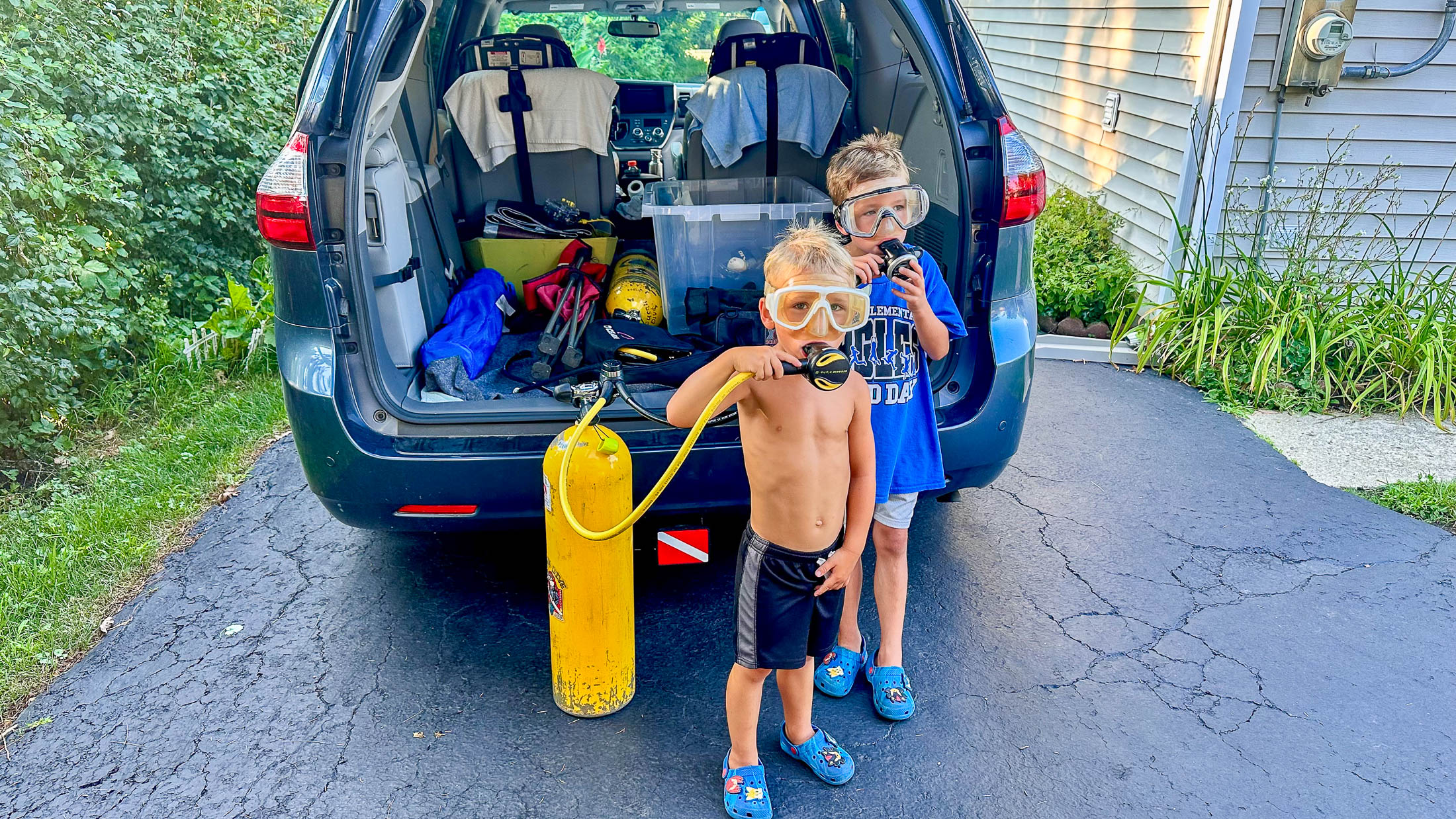 Now, Grayson turns seven this month, and by his next birthday, he’ll be old enough to begin the PADI Bubblemaker program. With that in mind, we decided it was time to dust off our old gear and bring it to Toucan Dive—the local dive shop where it all began—for a tune-up and a chance to get back in the water.