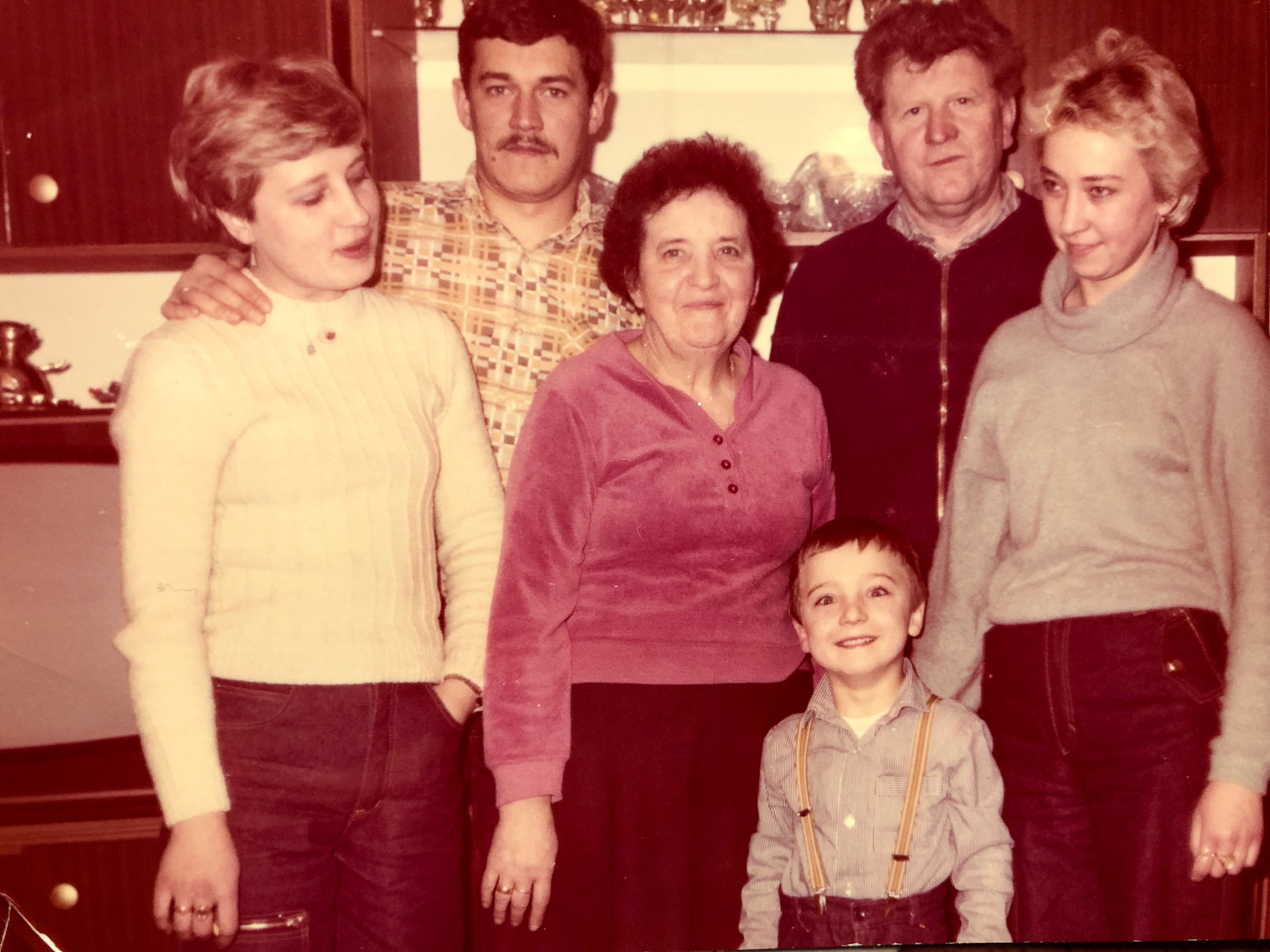 From Left: Ciocia Danusia (mom's sister), Wujek Mirek (her husband), Babcia Marysia (dad's side), me, Dziadek Zygmunt (dad's side), Ciocia Gosia (mom's sister).