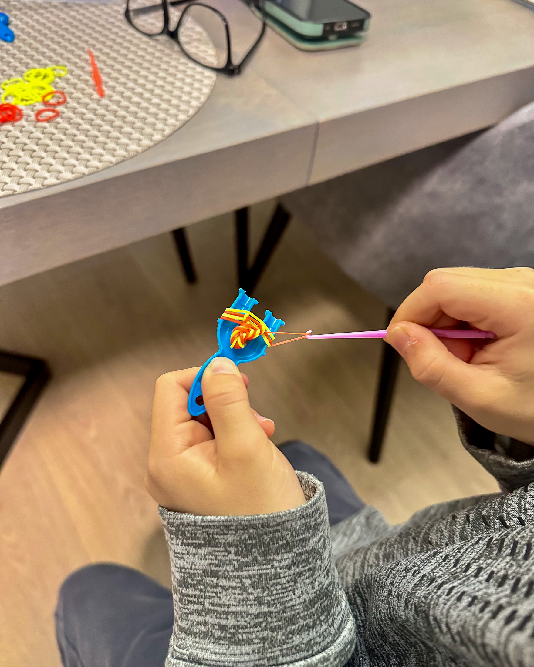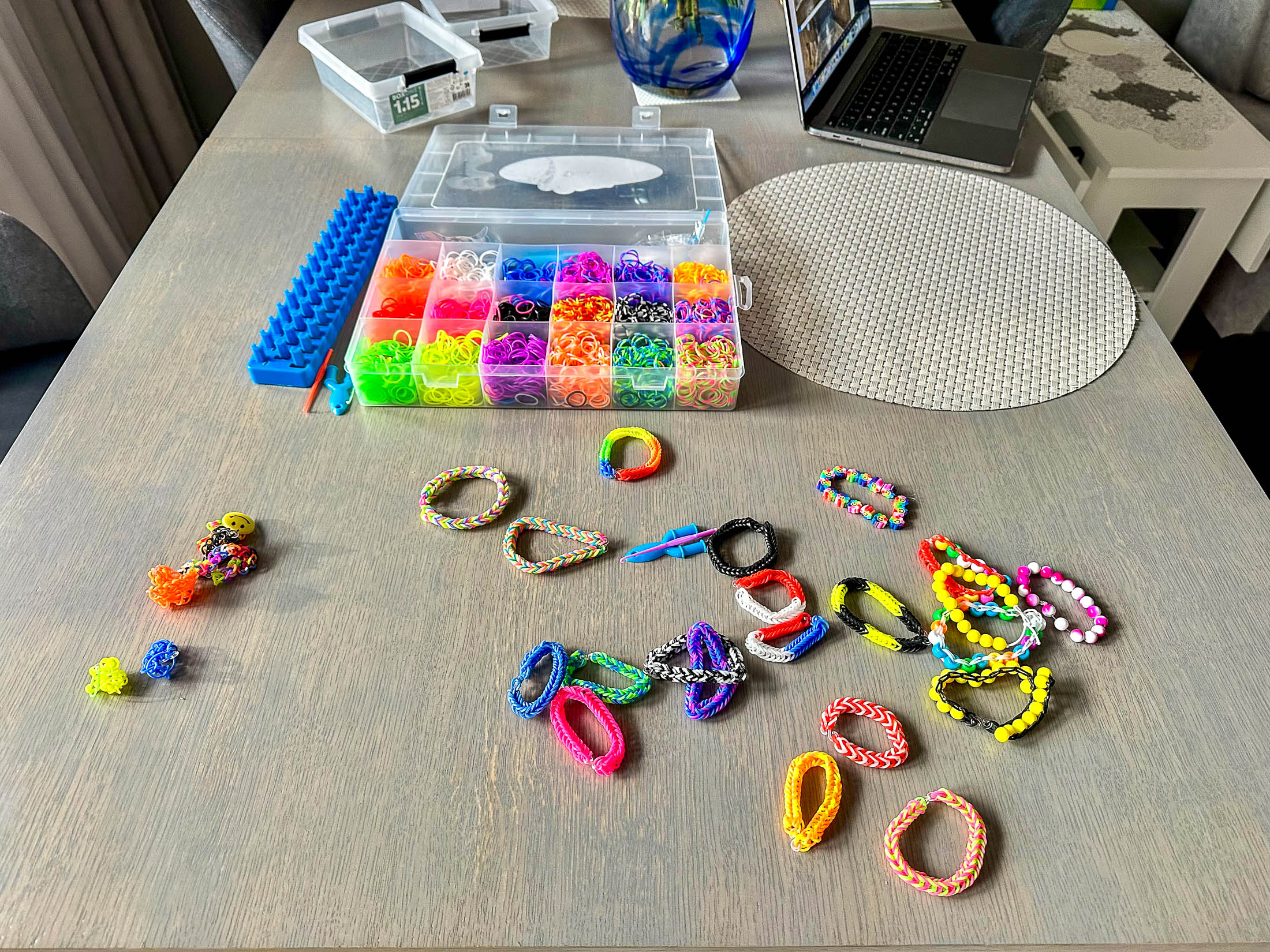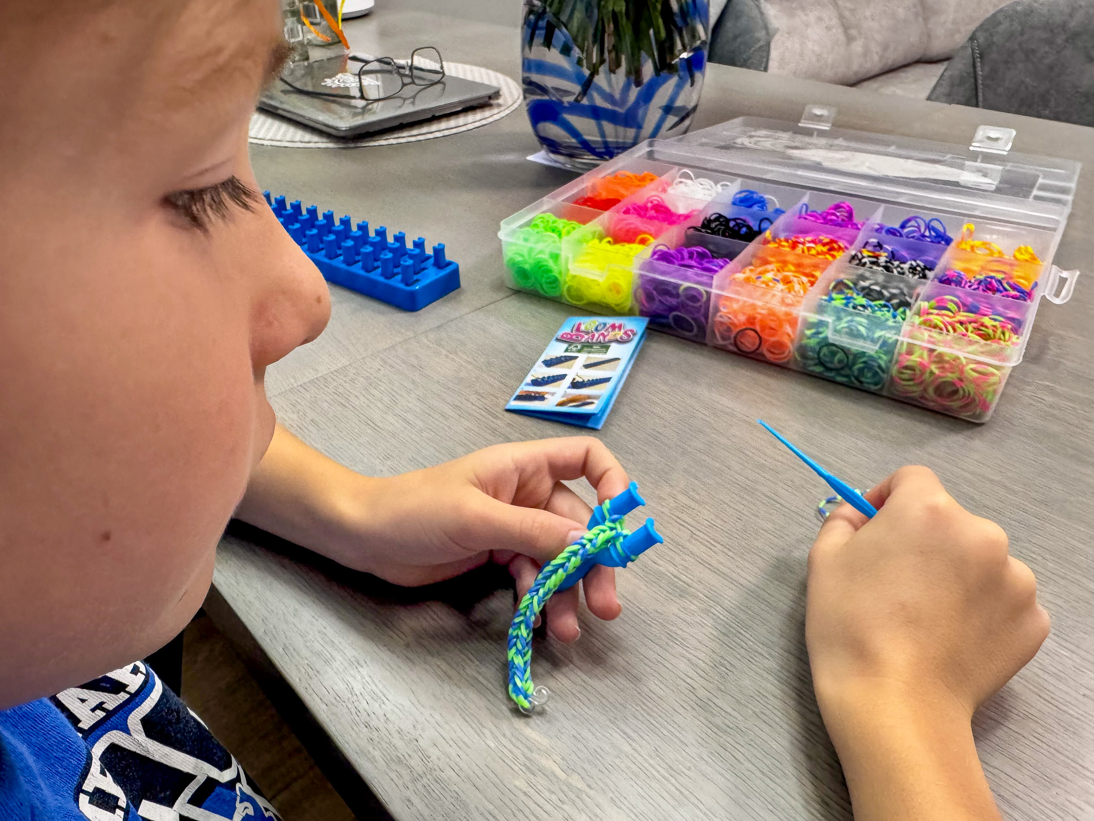 On Friday, when I picked up the boys from school, I put Grayson’s name on the list of participants. He seemed excited, and we suddenly had the whole weekend to figure out what he could sell. Using their unwanted toys wasn’t an option—they had just given those away to Olek in Grajewo during my quick trip there. So Sylwia took Grayson to the store to look for something he could make and sell. They ended up finding a rubber bracelet–making kit, with enough supplies to create dozens of colorful bracelets. She added a second small kit for beaded bracelets.